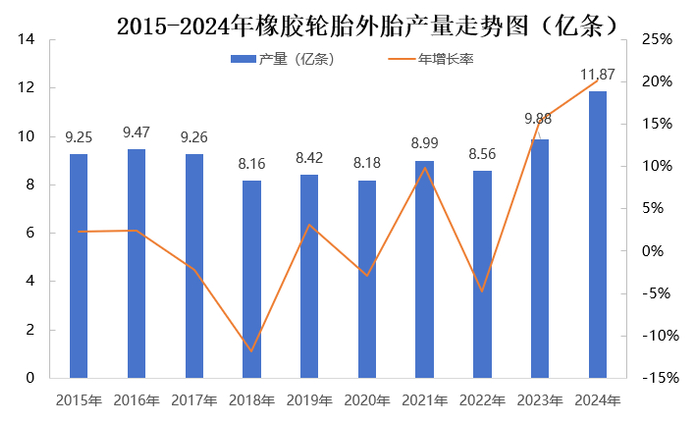 轮胎用橡胶是炭黑应用比重最大的领域,约占炭黑总量的67.5%。炭黑行业的发展与轮胎行业息息相关。近年来,受到国内汽车行业快速发展和全球轮胎产业向中国转移的双重拉动,国内轮胎行业保持了持续快速增长,从而带动了国内炭黑行业的发展。