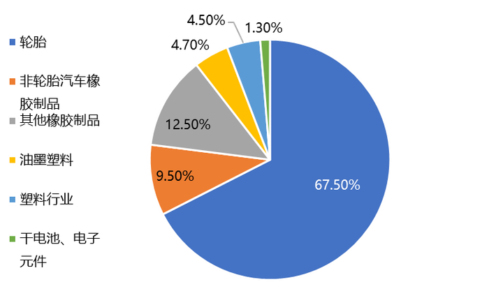 中国炭黑行业下游应用呈现多元化特征,主要覆盖以下领域(按市场份额排序):