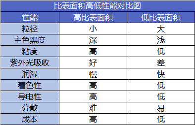 近年来,比表面积取代了粒径作为炭黑品种分类的主要依据。