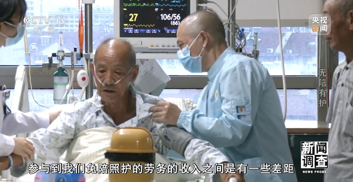 江苏省人民医院党委副书记 薛明新:既往的时候一对一的陪护比较多,特别是一些重的患者,护理员离不开身边的这种24小时的陪护,标准会高一些。据我们测算,第三方公司护理员一个月的劳务,和参与到免陪照护的劳务收入之间是有一些差距,差距不是太大。我们觉得多劳应该多酬,要让他们能够有更多的体面的合规合理的收入,也才能够确保护理员这支队伍的稳定性,才能让免陪照护这项工作能够更加持续、更加高效,更加长效。