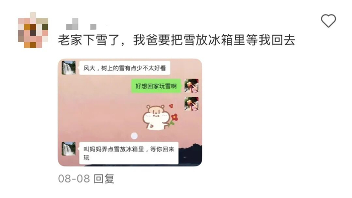 “好想回家玩雪啊”