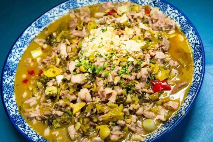 中江坨坨鱼源于中江水系发达的船帮文化。昔日船家以船为生,常在船上烹制食物,他们就地取材,将捕获的鲜鱼与随身携带的泡酸菜结合,经多年切磋琢磨,逐渐形成了这道风味独特的船家鱼肴。