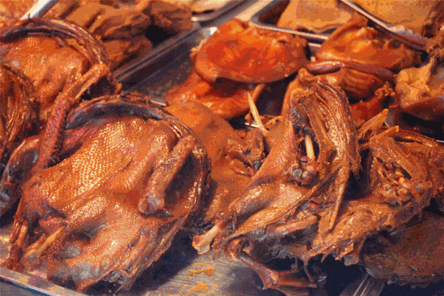 皮色金黄、肉色红润、肥而不腻、嫩而化渣、耐久咀嚼、鲜香味独特。最绝的当属鸭皮——薄如宣纸却脆若焦糖,齿间轻合即爆出混合了阳光与稻谷的奇异焦香。
