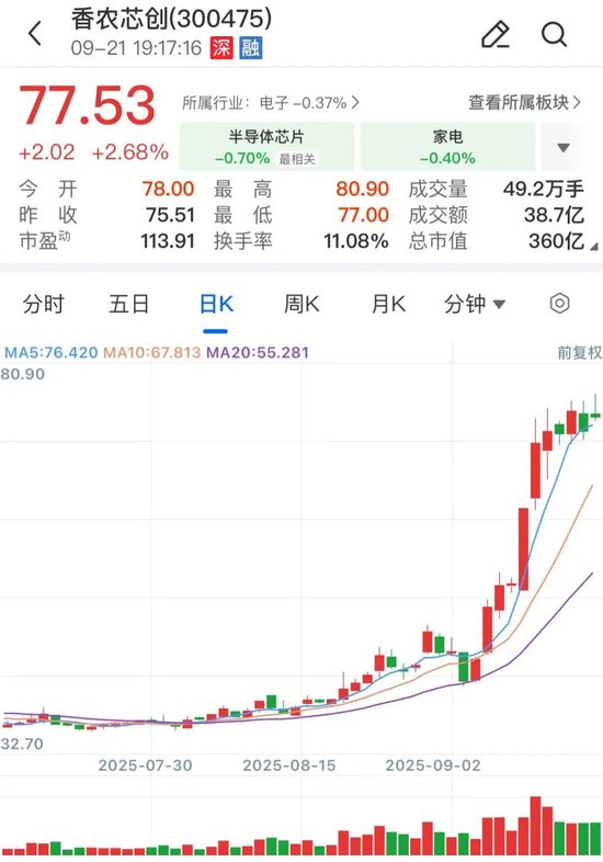 其中,HBM细分行业的香农芯创是国内半导体分销龙头,也是SK海力士HBM产品的国内代理。近日,无锡新威智算科技有限公司成立,该公司由无锡灵境云信息技术有限公司、香农芯创共同持股。中泰证券9月11日研报认为,公司自主品牌“海普存储”已完成建设与开发:现已完成企业级DDR4、DDR5 及Gen4 eSSD 的研发和试产,产品性能优异,用于云计算存储等领域。未来有望打开长期成长空间。二级市场方面,香农芯创股价在周五盘中创下历史新高,触及80.9元/股,自4月低点迄今累计最大涨幅248.7%。