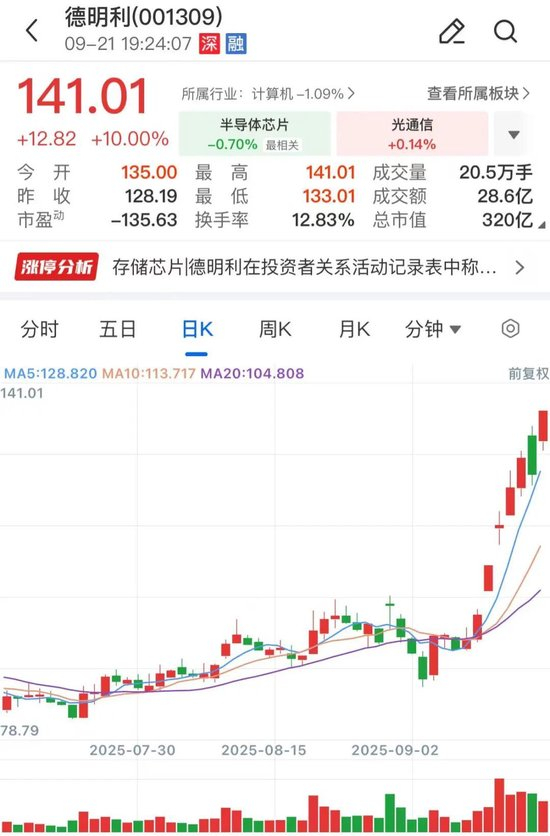 德明利2020年国内存储卡市占率6.73%。公司有存储卡模组、固态硬盘、嵌入式存储及内存条四类产品,同时已研发量产了多款存储主控芯片,支持多家存储原厂的存储晶圆产品如三星电子、铠侠、西部数据/闪迪、海力士、长江存储等,最终通过存储模组产品形式实现销售。德明利股价周五涨停,收于141.01元/股,创历史新高,自4月低点迄今累计最大涨幅104.7%。