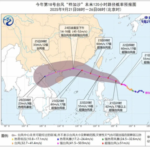 据广东省气象台消息,今日(21日)17时,今年第18号台风“桦加沙”(超强台风级)中心位于北纬18.6度,东经125.8度,中心附近最大风力17级,达到60米/秒的风速,成为今年以来西北太平洋最强台风。预计“桦加沙”将以每小时15-20公里的速度向西北方向移动,于22日夜间前后移入南海东北部海面,23日至25日将严重影响广东省海面和陆地。