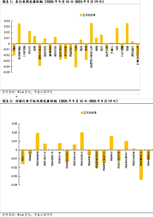 市场综述:2025 年9月15日-2025 年 9月19日,上证综指、深证成指、创业板指的涨跌幅分别为-1.30%、1.14%、2.34%。细分到传媒各子行业来看,网络游戏指数涨幅较大,网络彩票指数跌幅较大。周涨跌幅个股中,涨幅 Top3 分别为星辉娱乐、完美世界、欢喜传媒,分别上涨25.95%、14.55%、13.85%;跌幅 Top3 分别为吉视传媒、粤传媒、文投控股,分别下跌23.52%、14.43%、11.54%。