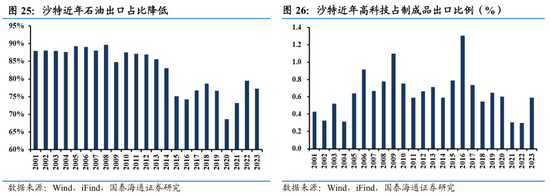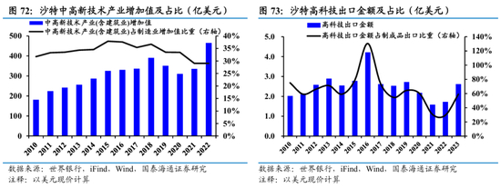 3、行业角度,近年沙特制造业GDP占比显著提升,中下游部门活跃度增强,其他非油部门如基础服务和新兴服务业等增长扩容。