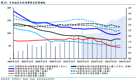 5)上文提到,沙特在世俗化改革推动下,近年女性劳动参与率快速提升,同时也带动女性消费需求的增长。