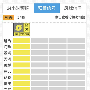 截至9月22日21时28分,广州11区均已升级为台风黄色预警。台风黄色预警信号意味着24小时内将受台风影响,明天上午天气形势仍较稳定,这也是关键“窗口期”,请大家提前做足准备。