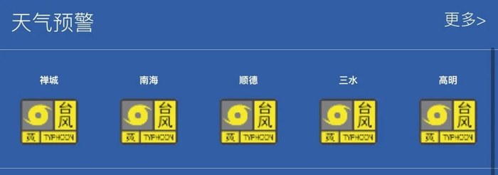 此外,9月22日21时许,佛山各区台风蓝色预警信号已升级为黄色。根据佛山市极端天气延迟上学(放学)及停课指引,当所在区域发布台风黄色及以上级别预警信号时,应当停课。