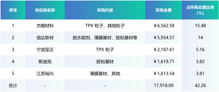 •合作稳定性:2010 年起合作,为其抗溢胶特种膜重要供应商,无关联关系。