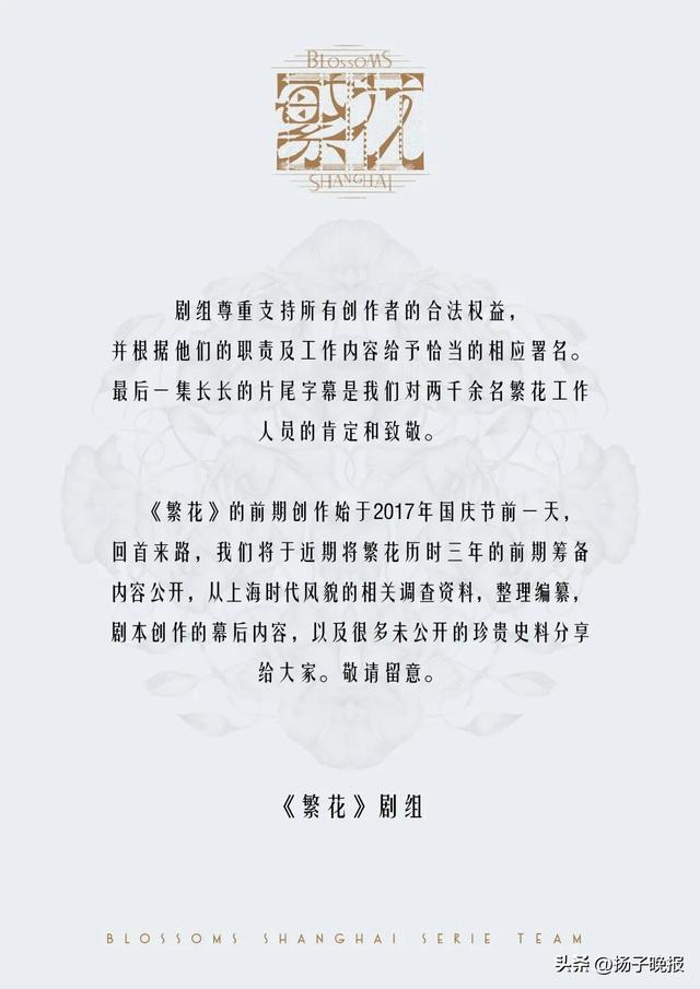 《繁花》剧组,严正声明