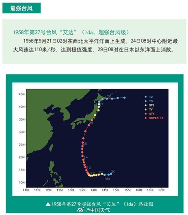 台风最低中心气压是衡量台风强度的指标之一,数值越低,代表台风越强。从中央气象台统计来看,最强台风是1958年第27号台风“艾达”,中心附近最大风速达110米/秒。但是,考虑到当时探测手段和台风定强技术的局限性,这些台风的中心附近最大风速可能存在明显的高估。气象专家表示,“桦加沙”相似强度的台风平均每年都会出现一个左右,靠近我国的情况相对较少。