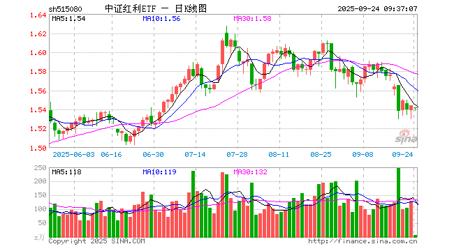 中证红利ETF(515080)开盘跌0.13%,重仓股中远海控跌0.28%,冀中能源跌0.34%