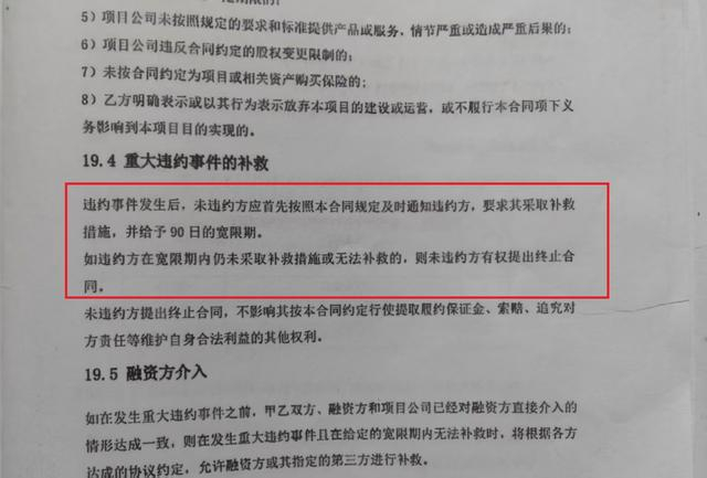唐显策表示,解除合同通知书中说发现公司存在重大违约行为,但合同中对此有明确约定,发生违约行为后,未违约方应首先通知违约方,采取补救措施,并给予90日宽限期,仍未补救或无法补救,则未违约方有权提出终止合同。