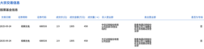 和辉光电今日大宗交易折价成交900万股,成交额2610万元 界面新闻 界面新闻官方账号 2025.09.2417:29 关注 9月24日,和辉光电大宗交易成交900万股,成交额2610万元,占当日总成交额的2.22%,成交价2.9元,较市场收盘价2.92元折价0.68%。