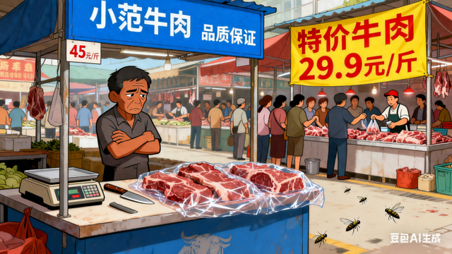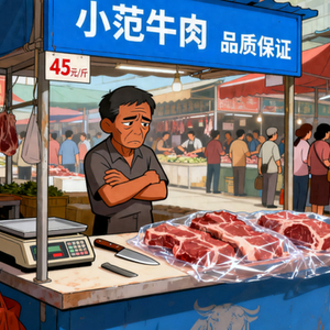 小范打听到了隔壁摊贩的“秘诀”,原来,他们有低价采购“牛肉”的渠道。于是,他要来了批发商阿亮(另案处理)的联系方式,开始找阿亮批发购买低价“牛肉”,并混搭着一部分自己的真牛肉一起卖。