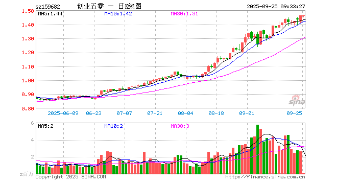 9月25日,创业50ETF(159682)开盘涨0.00%,报1.460元。创业50ETF(159682)重仓股方面,宁德时代开盘跌0.88%,东方财富跌0.19%,汇川技术涨0.78%,中际旭创跌1.77%,迈瑞医疗跌0.09%,新易盛跌1.81%,阳光电源跌0.14%,胜宏科技跌1.69%,亿纬锂能跌0.39%,同花顺涨0.02%。