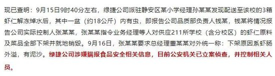 第一眼看到通报时,有个细节就让我特别在意:发现“虾仁解冻后有虫”后,绿捷员工将情况报告公司实际控制人张某某,张某某要求总经理董某某对外统一口径。