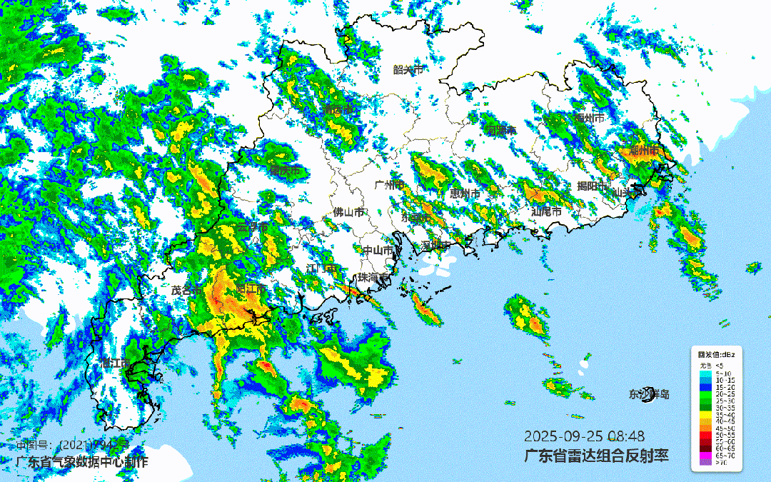 据气象水文监测,09月24日08时到09月25日08时,广东省平均雨量55.9毫米,超过25毫米镇街占全省总镇街数的82.9%,有5个镇街录得超过250毫米的特大暴雨,有357个镇街录得100毫米~250毫米的大暴雨,有566个镇街录得50毫米~100毫米的暴雨,有448个镇街录得25毫米~50毫米的大雨。