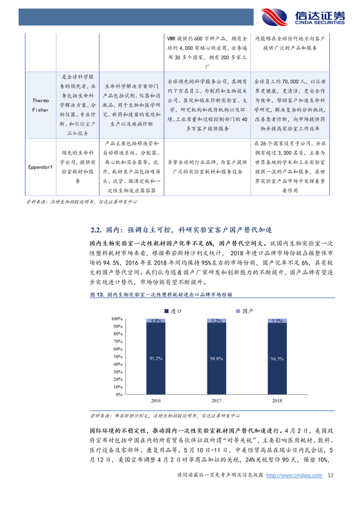 公司以ODM模式切入全球生物实验室耗材供应链,凭借自主设计与制造能力,与VWR、Thermo Fisher等国际龙头建立稳定合作,产品远销欧美等70多个国家及地区,逐步在海外市场建立了“质量可靠”和“性价比突出”的形象。随着产品质量逐渐被欧美客户认可,公司发力自主品牌,以高品质的产品、优质的服务和更划算的价格拓展市场,2024年公司在欧洲、南美、东南亚等区域市场的自主品牌渗透率显著提升,海外自主品牌收入同比增加46.07%,在境外收入占比达18.89%。我们认为随着公司海外自主品牌推广战略逐步落地,公司有望实现从代工生产到自主品牌的转型升级,在国际实验室耗材供应链中获得更多的价值量。