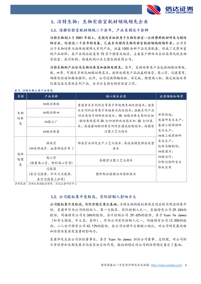 核心逻辑:洁特生物深耕生物实验室耗材领域二十余年,专注于生物培养与液体处理两大方向,技术实力领先,产品矩阵完善。我们认为随着海外自主品牌影响力逐步提升、国内工业和科研两大市场齐发力,公司业务有望保持较快增长,公司有望成为全球领先的实验室耗材供应商。