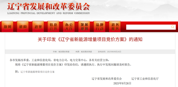 风芒能源获悉,9月26日,《辽宁省深化新能源上网电价市场化改革实施方案》、《辽宁省新能源增量项目竞价方案》公布。