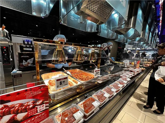 门店负责人陈先生介绍:“门店在保障民生基本需求的同时,超市商品结构发生了重大调整,生鲜区域面积占比约20%,熟食区域占比高达46%,远超行业平均水平,旨在更深入地满足社区居民的日常‘吃和用’的需求。”陈先生表示,这是目前昆明面积最大的学习胖东来自主调改店。