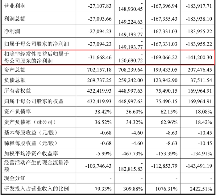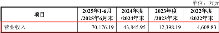 2022年至2025年1-6月,公司实现营业收入4,608.83万元、1.24亿元、4.38亿元及7.02亿元;扣非后归母净亏损14.12亿元、16.91亿元、15.07亿元及3.17亿元。2022年至2024年,公司营业收入复合增长率达208.44%。