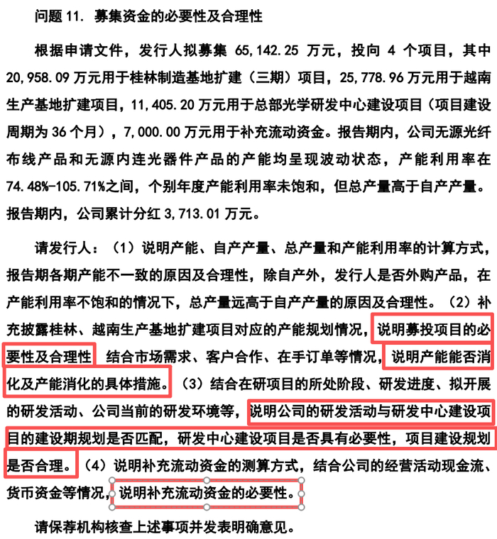 在审核阶段,监管层对于公司募集资金用途的合理性和必要性展开问询。北交所要求,说明拟使用募集资金投向“越南生产基地扩建项目”的具体方式、路径、需要履行的审批或备案手续、相关手续的办理进度,是否存在实施障碍。测算在国内投资建设与“越南生产基地扩建项目”同等规模项目的投入、产出差异,以及对公司经营业绩的影响。