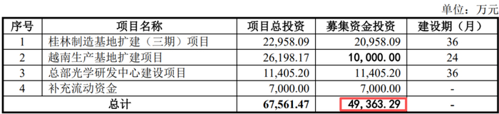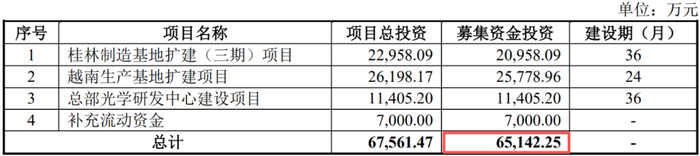 2024年12月,北交所受理了蘅东光的IPO申请。申报稿中,公司计划募资6.51亿元,分别用于桂林制造基地扩建(三期)项目、越南生产基地扩建项目、总部光学研发中心建设项目、补充流动资金。