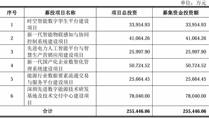 此次创业板IPO,南网数字拟募集资金25.54亿元,将用于以下六大项目: