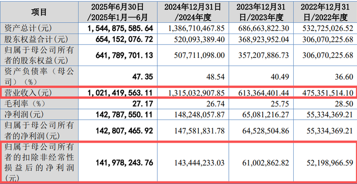 值得注意的是,2025年上半年公司营业收入已达10.21亿元,同比增长105.84%;扣非后归母净利润1.42亿元,同比增长186.76%,接近2024年全年水平。