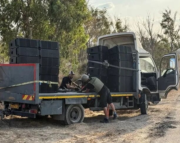 △9月26日,加沙边境附近,可以看到安装在卡车上的扬声器。