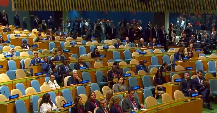 当天,内塔尼亚胡第一个走上发言台,众多落座不久的联合国会员国代表立马起身离席,从不同方向退场抗议,数人径直从内塔尼亚胡面前走开。代表席顿时空空荡荡。