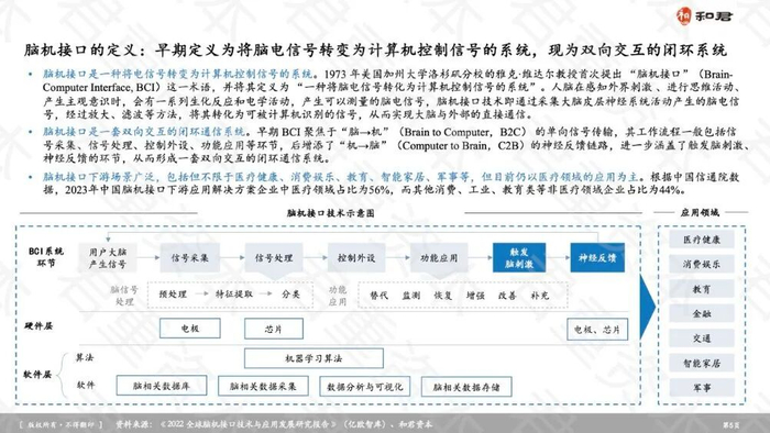 在这一背景下,和君集团旗下和君资本君重资本团队正式发布《中国脑机接口产业深度研究报告(2025年版)》。该报告全面梳理了全球脑机接口产业发展现状,厘清脑机接口的定义、功能及技术路线,深入分析脑机接口产业链现状及存在瓶颈,详细梳理了相关概念上市公司以及代表性非上市公司在脑机接口领域的业务布局情况,并对产业未来发展趋势作出前瞻性判断,旨在帮助企业家、产业研究人员以及从业者辨明现状、抓住主线趋势、优化投资或经营决策等。