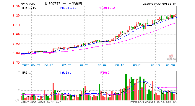9月30日,创业板300ETF天弘(159836)开盘涨0.42%,报1.203元。创业板300ETF天弘(159836)重仓股方面,宁德时代开盘跌0.34%,东方财富跌0.98%,汇川技术跌0.42%,中际旭创涨0.42%,迈瑞医疗跌0.09%,新易盛涨0.19%,阳光电源涨0.00%,温氏股份跌0.11%,胜宏科技涨0.41%,亿纬锂能跌0.81%。