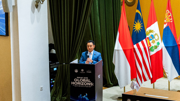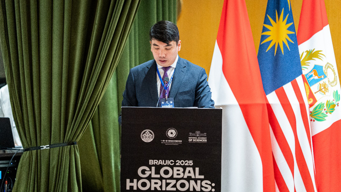 哈萨克斯坦国家科学院副院长谢里卡诺夫现场宣读科学院院长库尔什巴耶夫致辞。他指出,本次论坛具有高水平与重要意义。联盟自2017年由北京建筑大学发起以来,已汇聚全球30余国超百余所高校与机构,成为推动建筑教育、科研与项目合作的关键平台。他强调,建筑与建设行业直接关乎人民生活质量、城市可持续性及文化遗产保护,本次论坛为各方提供了宝贵的面对面交流机会,将有力促进在智能城市等领域的跨部门协作。他进一步表达了哈萨克斯坦国家科学院希望加入联盟的强烈意愿,期待在科研与国家发展方面开展更深层次合作,并相信此次盛会将成为推动哈萨克斯坦城市发展、深化国际合作的崭新起点,给所有与会者留下美好而深刻的阿拉木图印象。