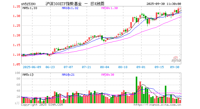 沪深300ETF指数基金(515390)涨0.22%,半日成交额1239.40万元