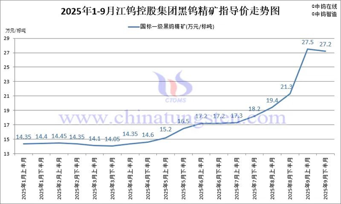 4.2 2025年1-9月份江钨集团长单报价走势图