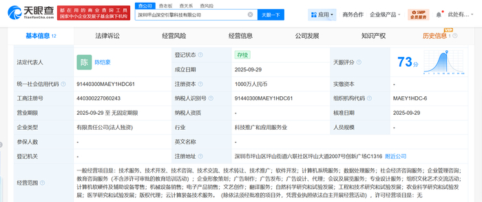 每经AI快讯,天眼查工商信息显示,近日,深圳坪山深空引擎科技有限公司成立,法定代表人为陈恺豪,注册资本1000万元人民币,经营范围含计算机系统服务、数据处理服务、社会经济咨询服务、企业管理咨询、组织文化艺术交流活动、计算机软硬件及辅助设备零售、工程和技术研究和试验发展、云计算装备技术服务等。股东信息显示,该公司由抖音旗下北京火山引擎科技有限公司全资持股。