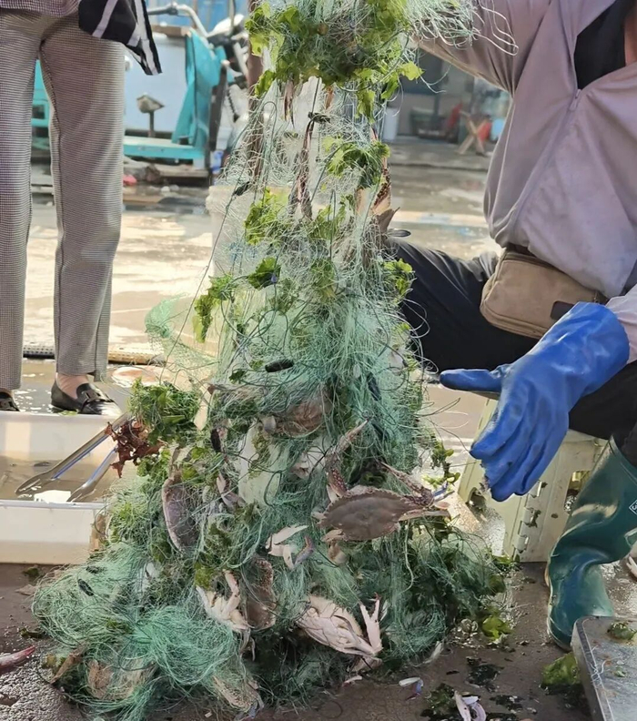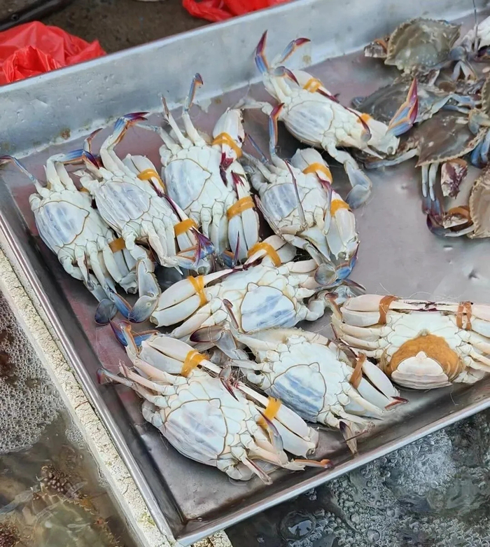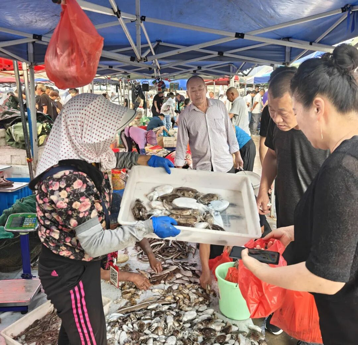 一位渔民刚从三轮车卸下几捆缠满梭子蟹的网具,便高声吆喝:“35元一斤!”一位顾客马上递上塑料袋,请他直接把螃蟹装进去。“8只55元!”这位顾客表示,“螃蟹虽然个头不算大,但一看就非常新鲜。”