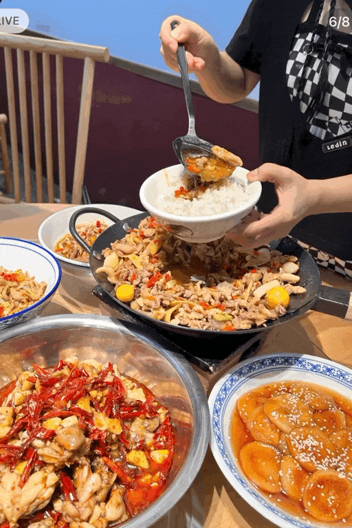 不仅如此,衡阳各县更是风味富集之地,油茶在衡阳已有两千多年种植历史,用它的树籽榨出的茶油,在高温快炒间仍然能清香四溢,是土鸡的“黄金搭档”,炒鸡时要是没有茶油,滋味都要折上五成;在各地常见的红绿二色辣椒之外,衡阳三樟镇出品的黄贡椒,皮薄肉厚,辣度恰到好处,是衡阳小炒的风味之魂;衡阳本地出产的米酒,既能饮用又是下菜的好手,沿着锅边来一圈,随着“嗞嗞嗞”的声响,鲜味也在锅中炸开.......精于调味的衡阳小炒,由此构就了独一无二的滋味。