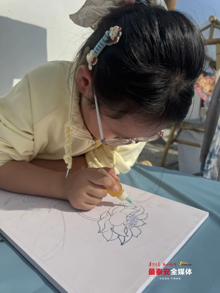 街区多元业态也为游客提供了丰富体验:窑烤面包坊前飘出阵阵麦香,泰式咖啡馆中呈现特色拉花技术,本地餐饮“胖子炒鸡”的泰山松菇炖鸡等鲁菜让食客赞不绝口。文化体验区内,泰山拓片工坊的非遗传承人现场教学,吸引不少传统文化爱好者参与;红石榴文创店推出的泰山文化系列产品,成为游客争相选购的纪念佳品。