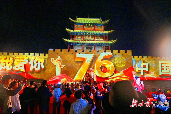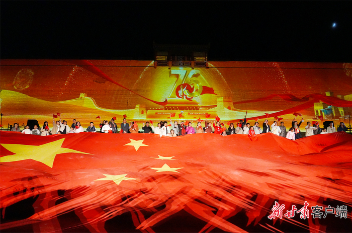 今年国庆假期,嘉峪关关城景区运用光影技术将“我爱你中国”等各式国庆标语和图案投射在关城雄伟的城墙上,以沉浸式的视觉呈现,让游客在夜游关城体验中感受浓厚的节日氛围与家国情怀。游客们撑起巨幅国旗,挥舞着手中的小国旗,齐声高唱《我和我的祖国》《歌唱祖国》等歌曲,表达着对祖国浓浓的热爱之情。