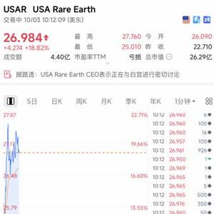 美股稀土概念股全线爆发,USA Rare Earth公司股价一度暴涨超22%。消息面上,该公司首席执行官Barbara Humpton确认公司正与美国白宫进行讨论。