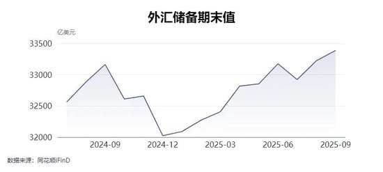 国家外管局解读,2025年9月,受主要经济体宏观经济数据、货币政策及预期等因素影响,美元指数小幅震荡,全球金融资产价格总体上涨。汇率折算和资产价格变化等因素综合作用,当月外汇储备规模上升。我国经济保持总体平稳、稳中有进,高质量发展取得新成效,有利于外汇储备规模保持基本稳定。