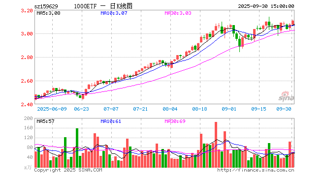 9月30日1000ETF(159629)份额减少2200.00万份,最新份额43.05亿份,最新规模133.73亿元