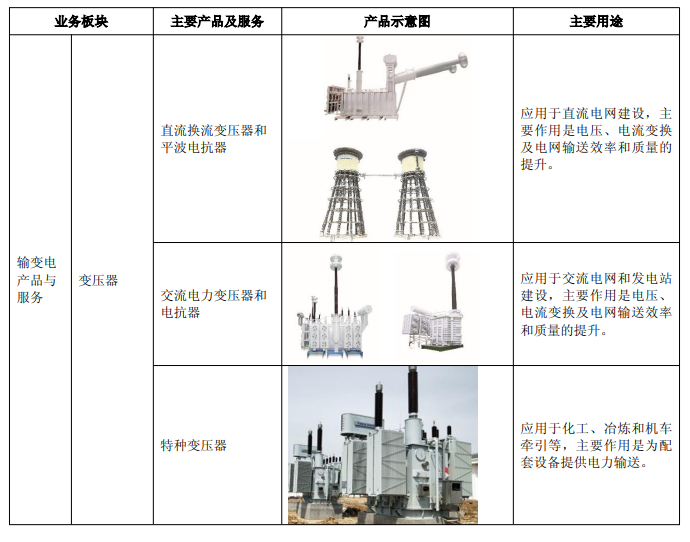 公司的产品广泛服务于全国31个省区的电网电源建设及 “三峡工程”、“西电东送”、“西气东输”、“电气化铁路”、“奥体场馆”、“神舟五号发射”等国家重点工程,远销五大洲60个国家和地区,服务于“美国西部电网改造工程”、“欧亚洲际电网改造工程”、“非洲、海湾成套项目工程”等国际重点项目当中。公司输变电产品的产销量、净利润、人均利润率、人均劳动生产率等指标均居全国同行业首位。